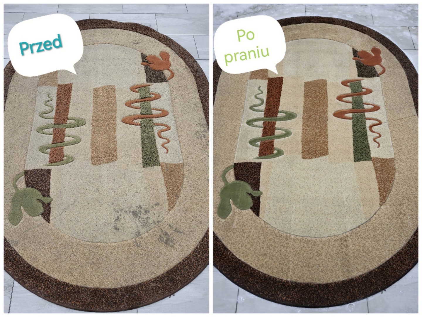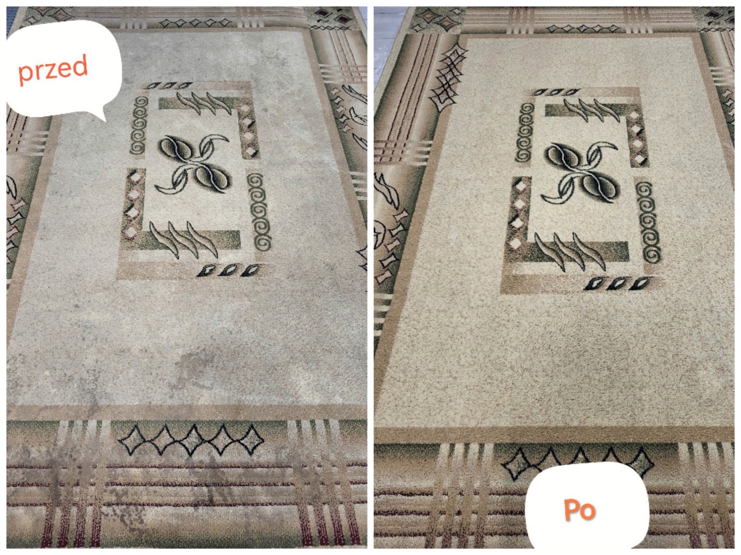 Efekty prania dywanów — Przed i Po